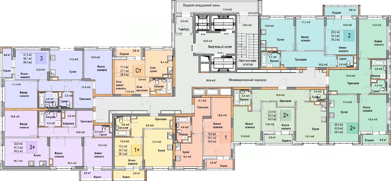 Двухкомнатная квартира от застройщика в ЖК "Кузнечиха город" на 4 этаже. Общая площадь: 56.2 кв.м., жилая: 25.2 кв.м., площадь просторной кухни-столовой: 13 кв.м. Высота потолков 2.7 м.