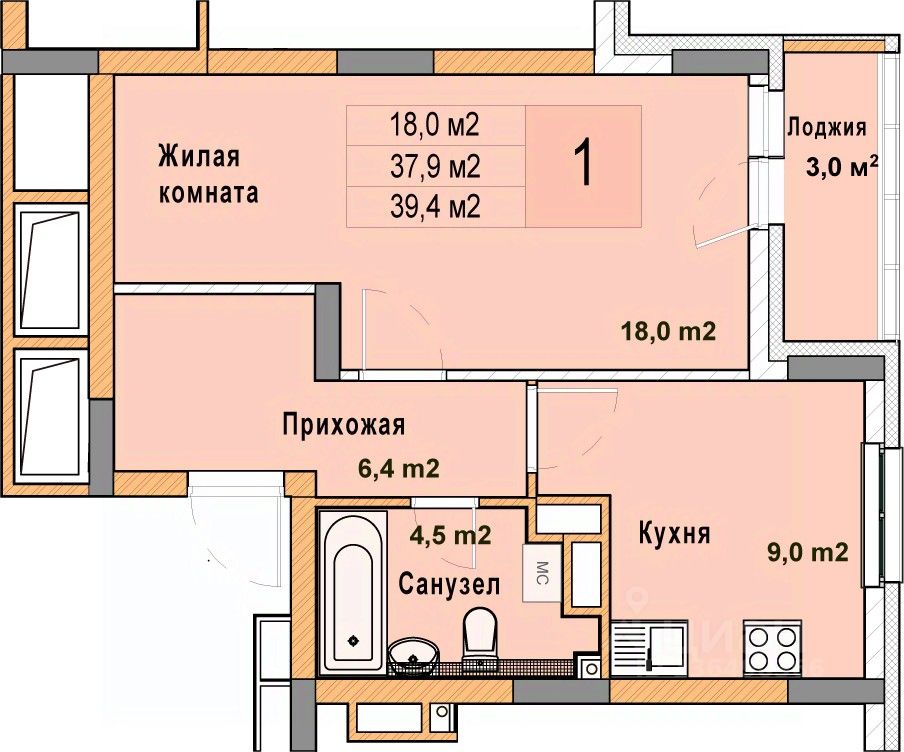 Продается 1-комн. квартира в ЖК "Кузнечиха город" на 7 этаже. Общая площадь: 39.4 кв.м., жилая: 18 кв.м., площадь просторной кухни-столовой: 9 кв.м. Высота потолков 2.7 м.