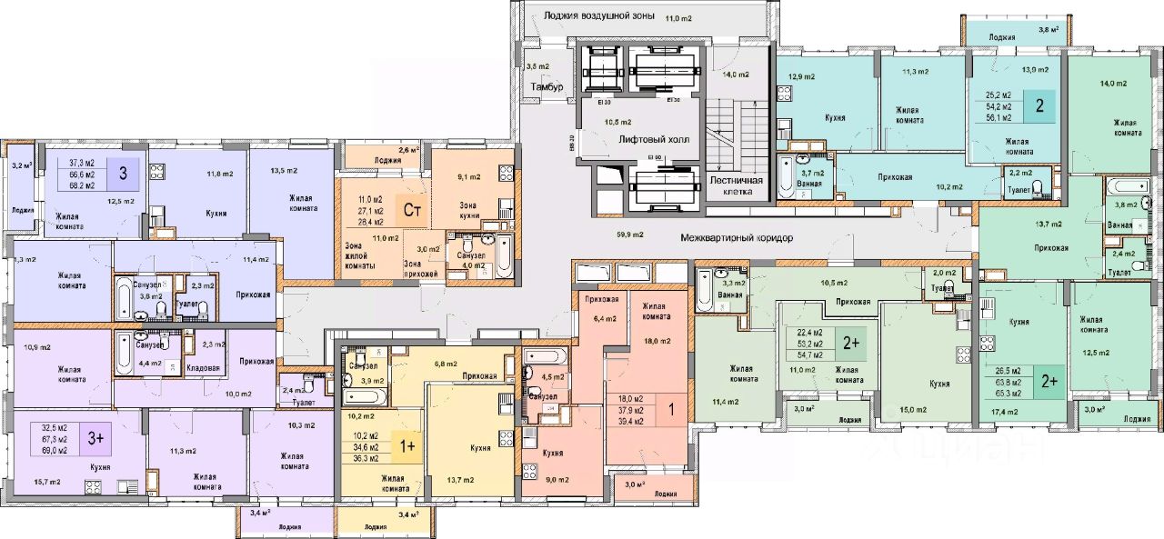 3-комн. квартира в ЖК "Кузнечиха город" на 7 этаже. Общая площадь: 68.2 кв.м., жилая: 37.3 кв.м., площадь просторной кухни-столовой: 11.8 кв.м. Высота потолков 2.7 м.