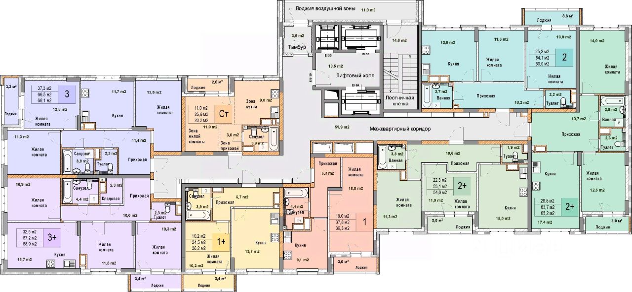 Однокомнатная квартира в ЖК "Кузнечиха город" на 9 этаже. Общая площадь: 39.3 кв.м., жилая: 18 кв.м., площадь просторной кухни-столовой: 9.1 кв.м. Высота потолков 2.7 м.