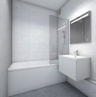 В жилых комнатах, кухне и прихожей — обои нейтрального оттенка, белые межкомнатные двери без стекол. Пол в жилых комнатах — ламинат под дуб, в кухне и прихожей — плитка. Натяжные потолки во всех помещениях. Стены и пол в ванной и санузле будут отделаны керамогранитом, в ванной установлен полный комплект сантехники, включая акриловую ванну с экраном и смесителем, тумбу для хранения под раковиной, зеркало с подсветкой. Застройщик также позаботился и о деталях, поэтому все инженерные коммуникации, стояки водоснабжения и канализации будут скрыты декоративными коробами. #2mAz4T