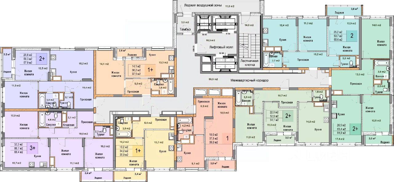 2-комн. квартира в ЖК "Кузнечиха город" на 17 этаже. Общая площадь: 55.6 кв.м., жилая: 25.2 кв.м., площадь просторной кухни-столовой: 12.4 кв.м. Высота потолков 2.7 м.