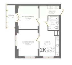 Общая площадь52,73 м²