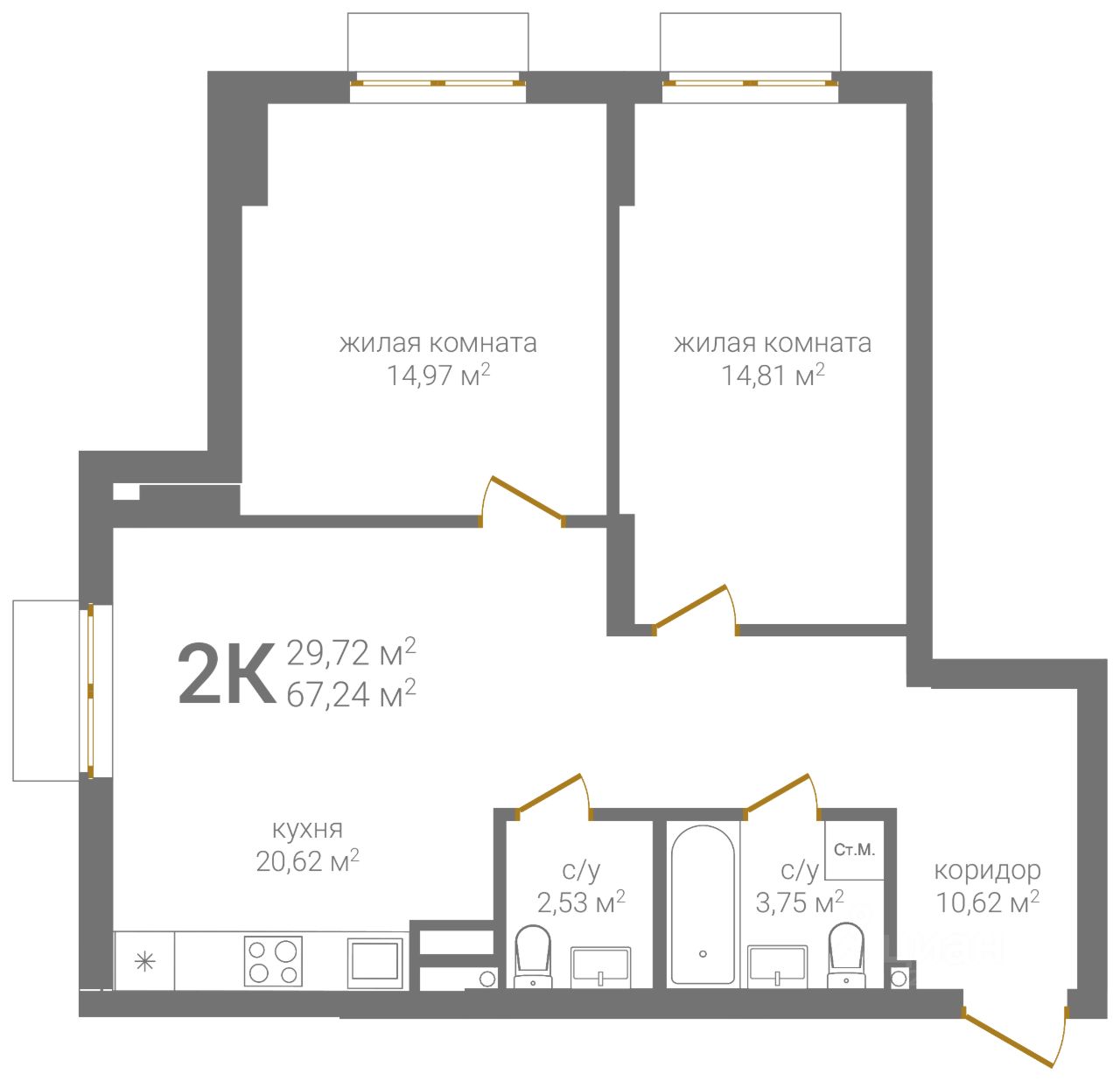 Общая площадь67,24 м²