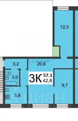 57,1 м²