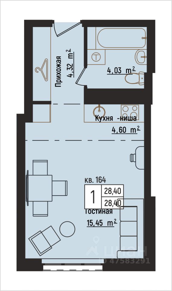 Общая площадь28,4 м²