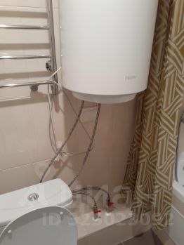 Санузел совмещенный, выполнен в современном стиле. Установлен 100-литровый электрический водонагреватель. Возможность подключения стиральной машины организована. В квартиру заведен интернет от Дом.ру(договор расторгнут). Домофон-трубка работает, есть возможность поставить видеодомофон.