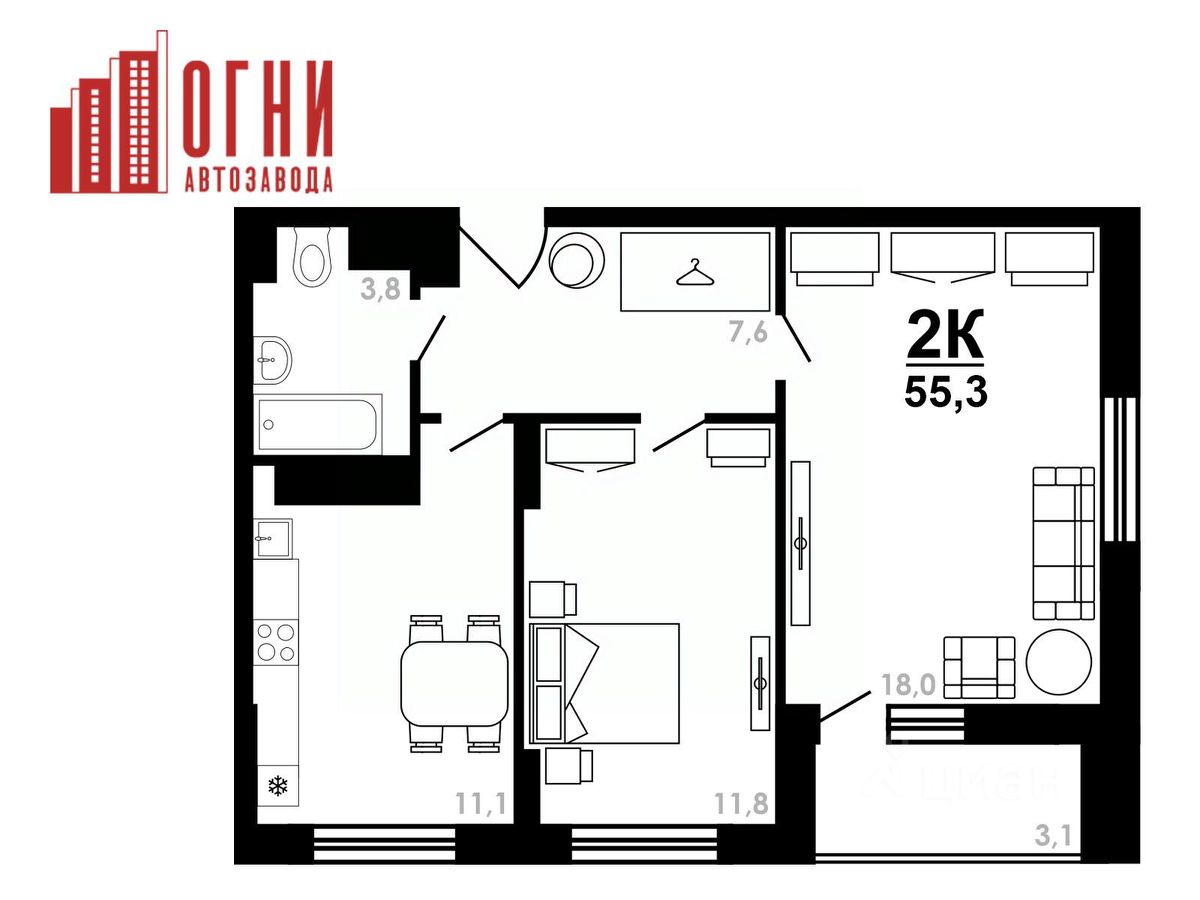 Продаётся 2-комнатная квартира в строящемся доме (дом 4), срок сдачи: IV-кв. 2026, общей площадью 55.3 кв.м., на 21 этаже. "Огни Автозавода" - новый современный жилой комплекс, где вы найдете квартиру своей мечты.