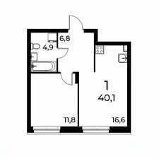• 1-комнатные квартиры: от 36 м²