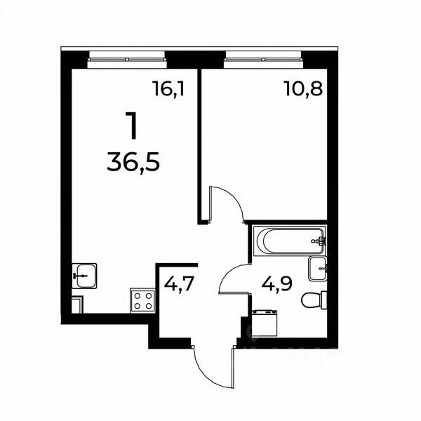 • 1-комнатные квартиры: от 36 м²