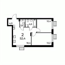 • 2-комнатные квартиры: от 49,6 м²