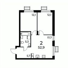 • 2-комнатные квартиры: от 49,6 м²