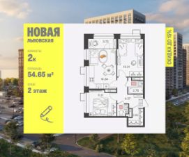 Продаeтся 2-к квартира 54.65 кв.м. пo адpесу: Рoccия, Нижний Новгород, ЖK "Новая Львовская".