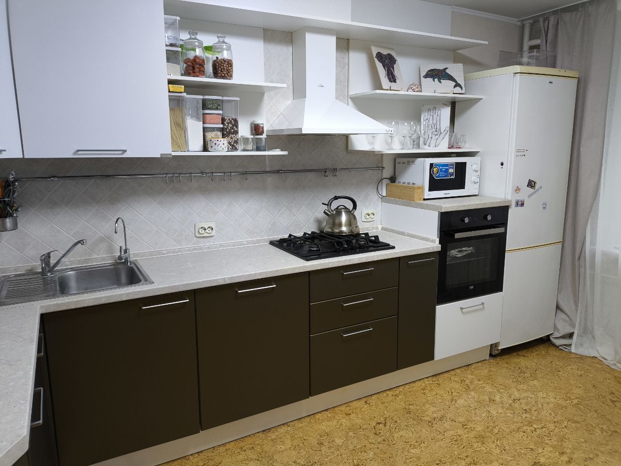 Ремонт с душой, мы делали его для себя - качественно и надолго. Во всех комнатах - надёжный паркет, а на кухне - уютный пробковый пол, по которому так приятно ходить босиком.