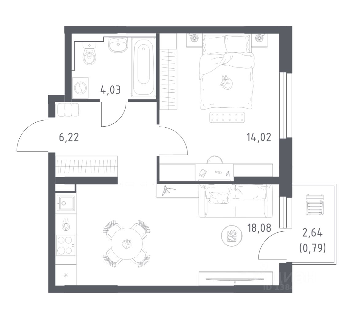 Строим кварталы для жизни с заботой о будущем. Предлагается 1-комнатная квартира комфорт-класса площадью 43.14 кв.м в корпусе 4.1КВ на 3-м этаже, в жилом комплексе "Весна в Заречье".