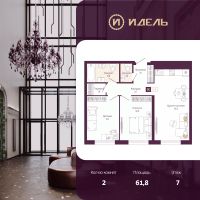 Продается двухкомнатная квартира с предчистовой отделкой в ЖК "Идель. Квартал на Сенной" на 7 этаже. Общая площадь: 61.8 кв.м., жилая: 24.1 кв.м., площадь просторной кухни-столовой: 21.3 кв.м. Комнаты изолированные, все окна выходят на одну сторону. В квартире один совмещенный и один раздельный санузел. Высота потолков 2.8 м.