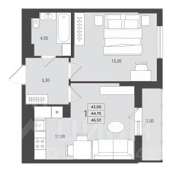 1-комнатная квартира евроформата (44,75 кв.м.) в ЖК "2Д Федосеенко" в Сормовском районе Нижнего Новгорода.