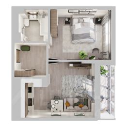 3D-модель в изображениях представлена исключительно в ознакомительных целях. Изображённые отделка, мебель, техника, предметы интерьера, декора и иные элементы оформления квартиры являются иллюстрацией возможного интерьера и не входят в состав приобретаемой квартиры. Подробности в отделе продаж.