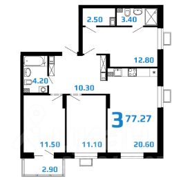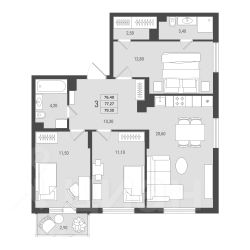 3-комнатная квартира евроформата в жилом комплексе "2Д Федосеенко" (77,27 кв.м.).