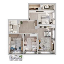 3D-модель в изображениях представлена исключительно в ознакомительных целях. Изображённые отделка, мебель, техника, предметы интерьера, декора и иные элементы оформления квартиры являются иллюстрацией возможного интерьера и не входят в состав приобретаемой квартиры. Подробности в отделе продаж.