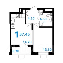 Кухня-гостиная 14,4 кв.м. позволит с пользой зонировать пространство на зону приготовления, приема пищи и зону отдыха. Из кухни-гостиной выход на лоджию 2,7 кв.м.