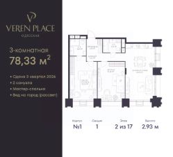 Продается трехкомнатная квартира с европланировкой в ЖК "VEREN PLACE Одесская" на 2 этаже. Квартира без отделки, полностью готова к ремонту. Общая площадь: 78.33 кв.м., жилая: 56.16 кв.м., суммарная площадь гостиной-столовой с кухонной зоной: 26.06 кв.м. Европейская планировка, зона гостиной комнаты объединена с кухней. Квартира угловая, идеально подойдет любителям тишины и панорамных видов. В квартире два совмещенных санузла. Высота потолков 2.93 м.