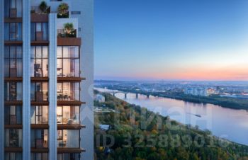 В доме предусмотрено 114 квартир различного формата площадью от 50 до 156 кв. м (от четырех до восьми квартир на каждом этаже). Во всех квартирах панорамное остекление, а на верхних этажах запроектированы террасы с видом на закат и слияние Оки и Волги. Отделка квартир в проекте не предусмотрена. #z6cIaB
