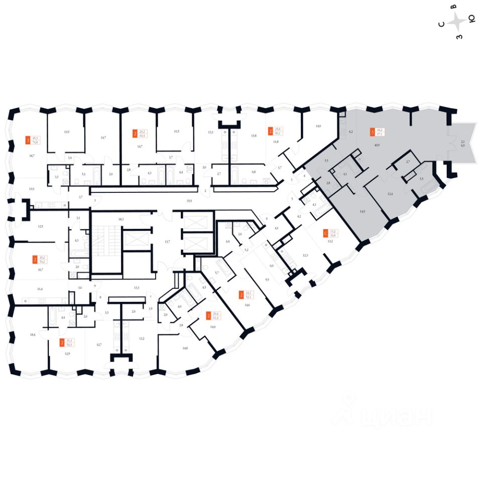 Комплекс объединяет шесть корпусов переменной этажности - от 3 до 20 этажей, что позволяет выбрать формат жилья по своему ритму жизни. В проекте представлены квартиры площадью от 27 до 237,9 м², включая эксклюзивные пентхаусы и урбан-виллы с собственными террасами и панорамными окнами.