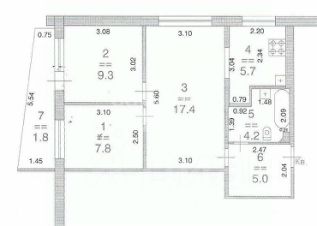 • 3-комнатную квартиру на 7 этаже 9-ти этажного дома.