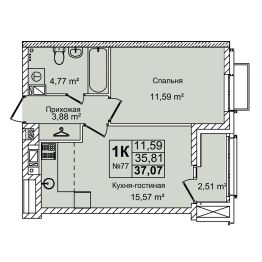 Общая площадь37,07 м²