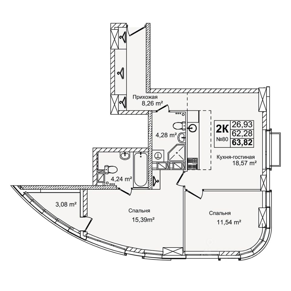 Общая площадь63,82 м²