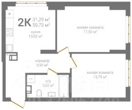 Общая площадь59,73 м²