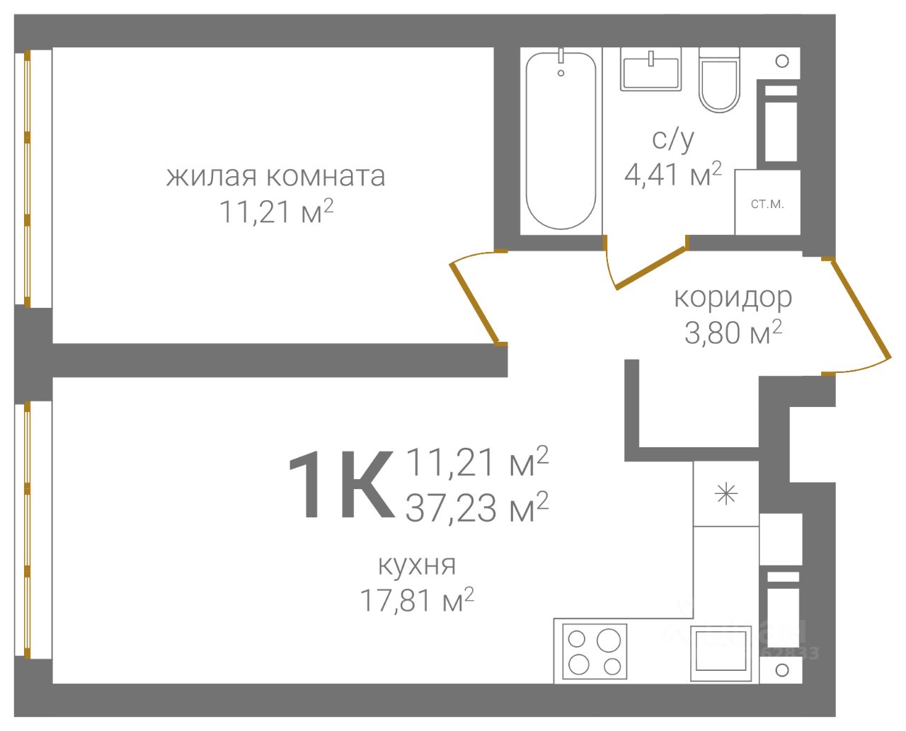 Общая площадь37,23 м²