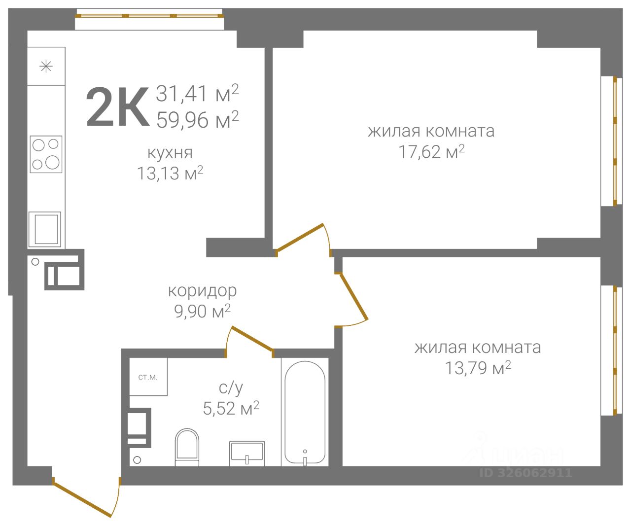 Общая площадь59,96 м²
