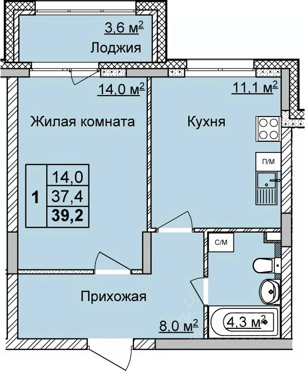 Просторная 1-комн. квартира с отделкой в ЖК "Мои Цветы" на 1 этаже. Общая площадь: 39.2 кв.м., жилая: 14 кв.м., площадь просторной кухни-столовой: 11.1 кв.м. Все окна выходят на одну сторону. В квартире один балкон, один совмещенный санузел. Высота потолков 2.65 м.