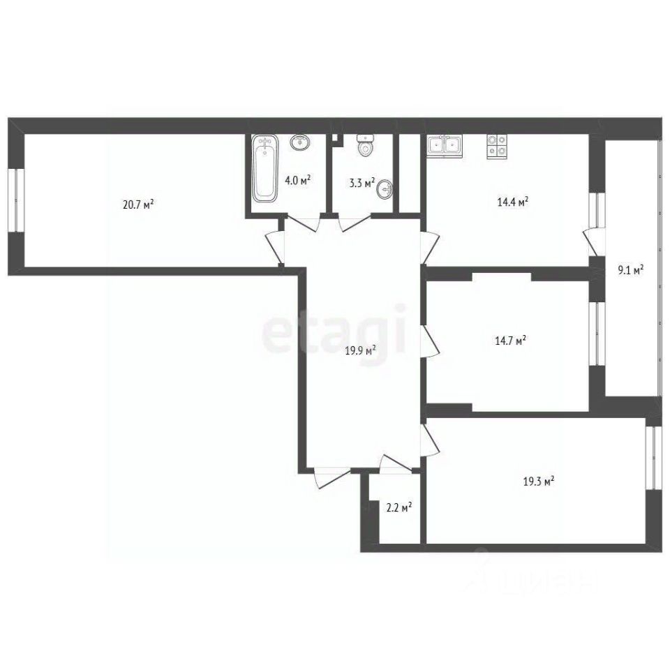 Продается просторная 3-комнатная квартира площадью 107 м² — идеальная основа для вашего дизайна!