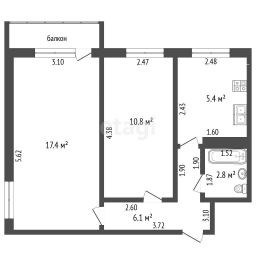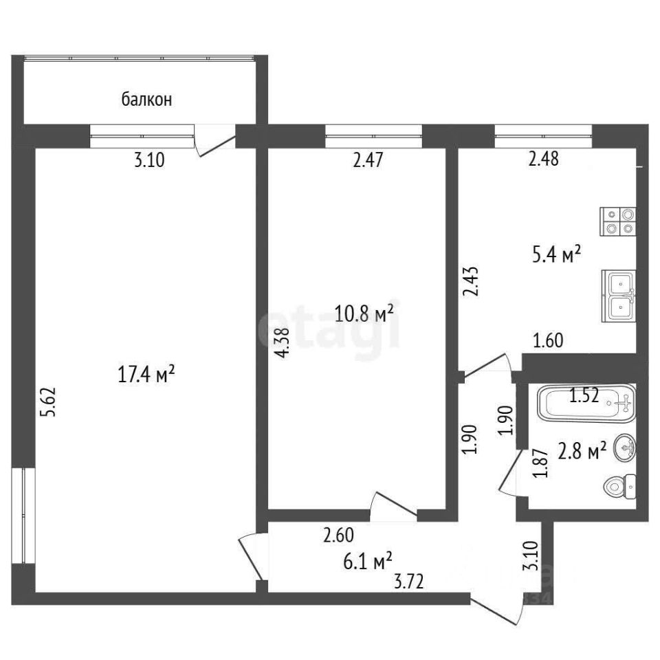 Планировка: Угловая, две изолированные комнаты. В большой комнате — два окна и выход на незастеклённый балкон.