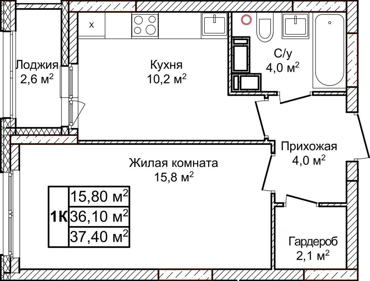 37,4 м²