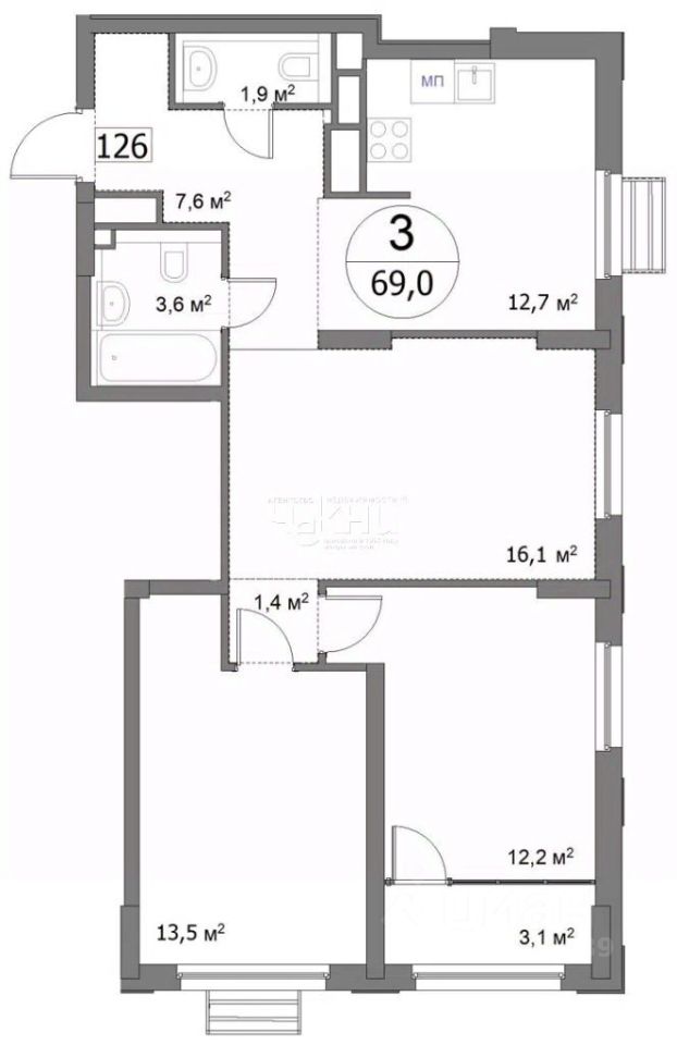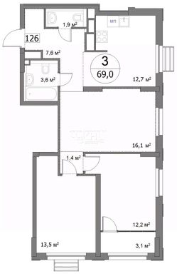 Общая площадь69 м²