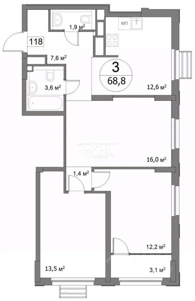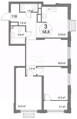 68,8 м²