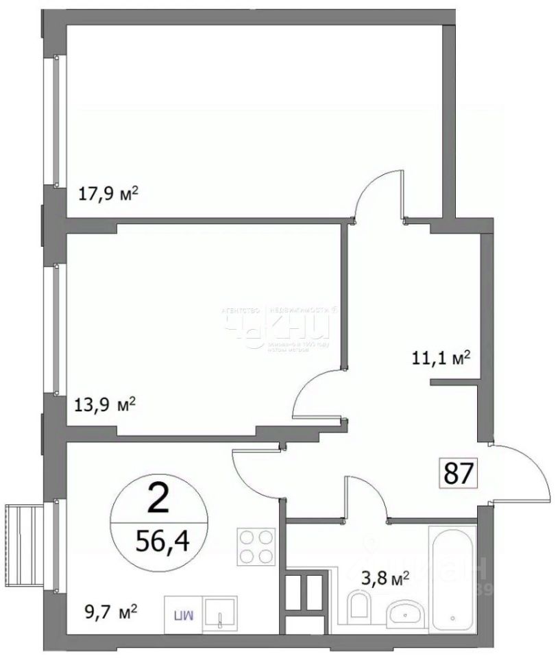 Общая площадь56,4 м²
