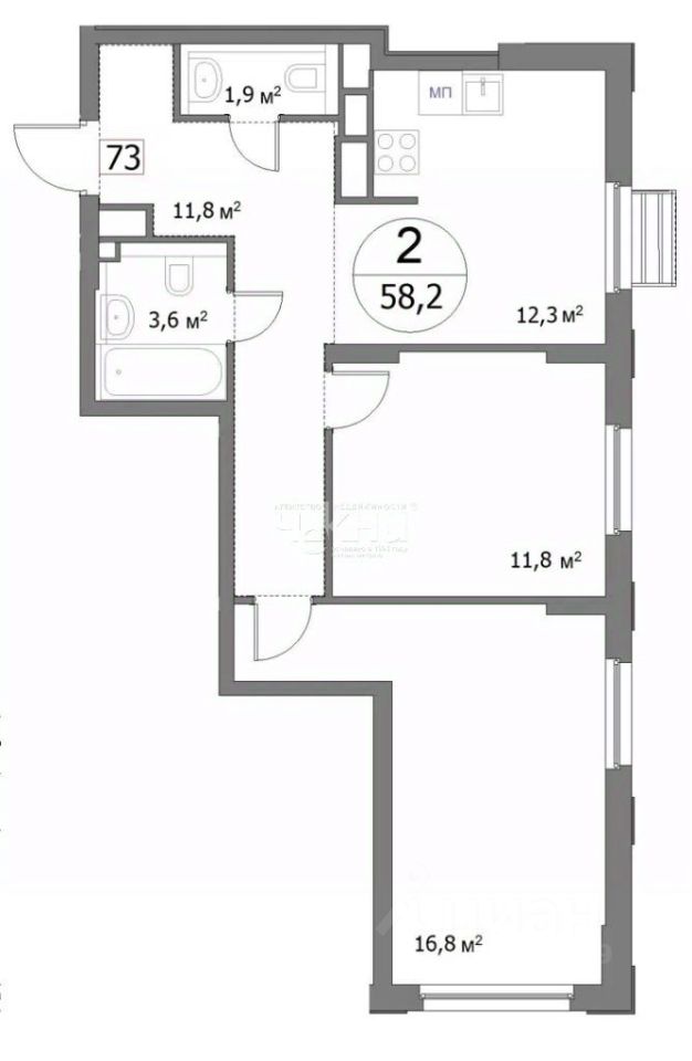 Общая площадь58,2 м²