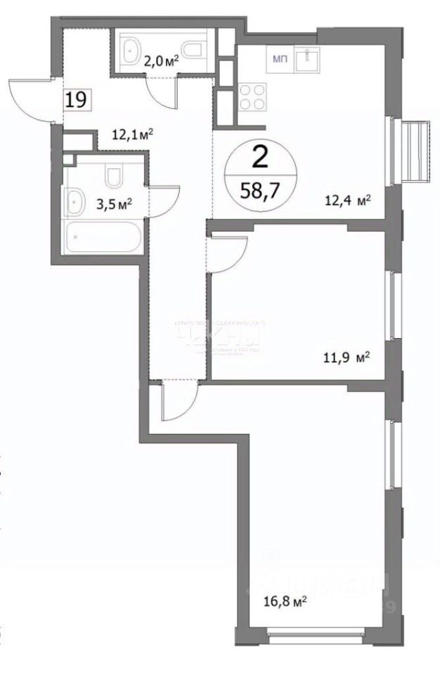 12,4 м²