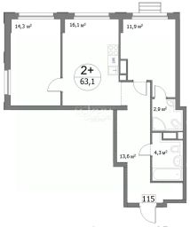 63,1 м²