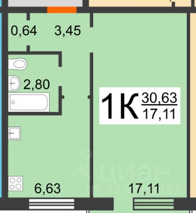 Квартира в отличном состоянии, с выполненным евроремонтом. Жилая площадь составляет 17.11 кв. м, а кухня — 6.63 кв. м, что позволяет комфортно разместить всю необходимую мебель и технику. Окна выходят во двор, что обеспечивает тишину и спокойствие. В санузле современная сантехника и качественные отделочные материалы.