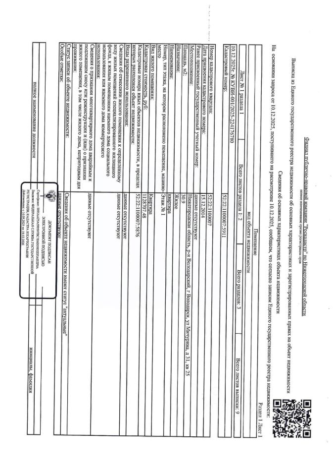 Квартира (жилое) общей площадью 30,9 кв.м, этаж 1, кол-во зарегистрированных 1 человек, кадастровый (или условный) номер 52:22:1100007:5911. Адрес: Нижегородская обл., Володарский р-н, г. Володарск, ул. Мичурина, д. 31, кв. 25. Должник Баринова Н.В.