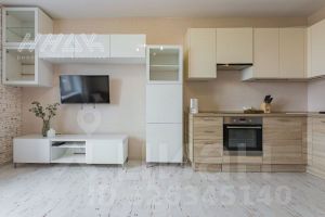 * на кухне-гостиной: угловой кухонный гарнитур Lorena с встроенной техникой - варочная панель, духовой шкаф, посудомоечной машиной, вытяжка, холодильник, обеденная группа, раскладной диван, кондиционер, стенка-горка, тумба под телевизор;