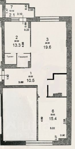 Общая площадь квартиры с учетом панорамной лоджии 66,9 кв.м., без учета лоджии 64,8 кв. м., жилая площадь 28,7 кв.м.: изолированная комната 15,4 и мастер-спальня 13,3 кв.м. с собственным санузлом и гардеробом , просторная кухня-гостиная 19,6 кв.м. , лоджия 2,1 кв.м., 2 санузла, функциональная прихожая 10,5 кв. м.