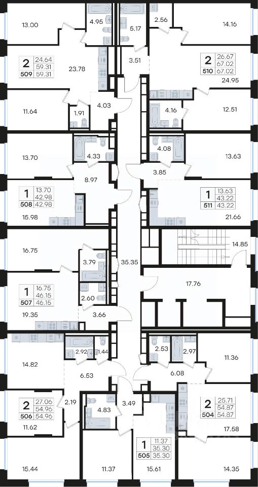 Продается 2-комн. квартира на 7-м этаже в строящемся проекте премиум-класса GloraX Premium Гребной канал. Общая площадь лота составляет 54,87 кв. м, из которых 25,71 кв. м отведено под жилую и 17,58 кв. м под кухонную зону. Номер квартиры - 504.
