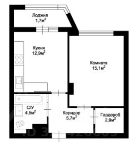 - большая кухня площадью 12,9 м2 с диваном и выходом на застекленную лоджию;